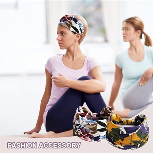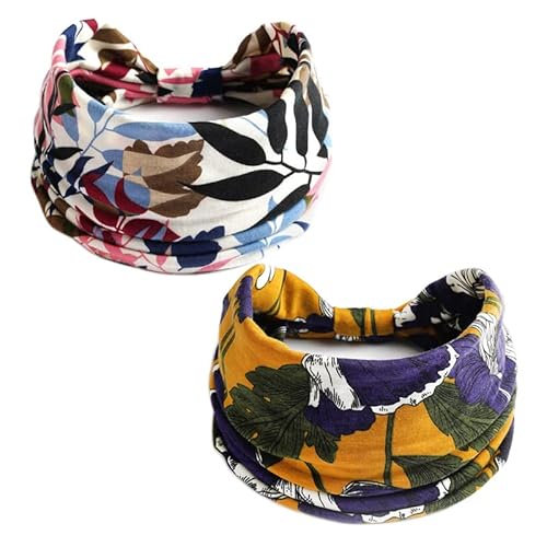 2 Pezzi Fasce per Capelli Donna, Elastiche Larghe Accessori per Capelli con Stampa Floreale, Fascia per Capelli Boho Stile Ragazze,per capelli africani,per Yoga, Corsa