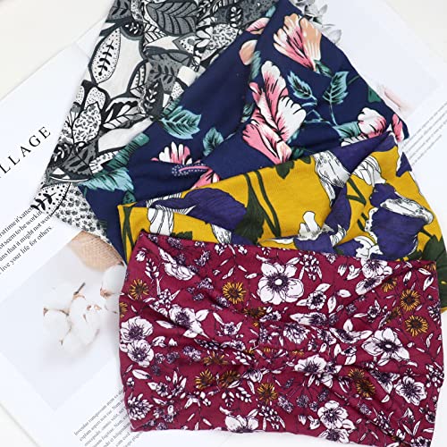 4 Pezzi Fasce Per Capelli Donna,Kavya Larga Fascia Capelli Elastici Stampa Leopardata Boho Alla Moda Stampa Floreale Accessori Capelli Per Lavoro Quotidiano Yoga(G)