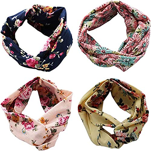 4 Pezzi Fasce per Capelli da Donna, Stile Floreale Boho Fascia per Capelli Yoga Annodata Bohémien per Donne Ragazze, Fascia per Capelli da Spiaggia Fascia Elastica per Capelli Accessori
