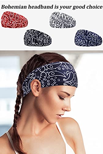 4 Pezzi Fasce per Capelli da Donne Fascia Bandana Paisley - Turbante di Cotone Elastico Larga Fascia Capelli Sciarpa - Fascia Elastica Donna Tessuto per Capelli Bohémien Ideale per Sport/Corsa/Yoga