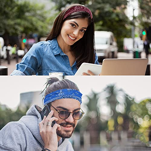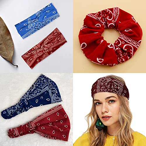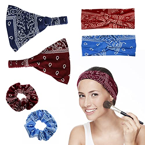 4 pezzi Fasce Capelli con 2 pezzi Grandi Elastici per Capelli, fascia elastica in cotone vintage stampato, fascia sportiva traspirante per la testa, fascia morbida regolabile per yoga.
