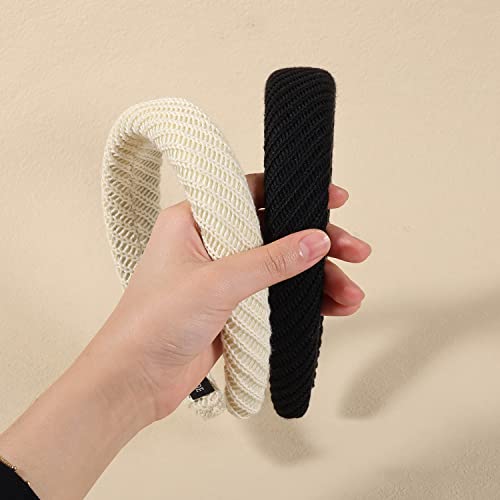 2 Pezzi Fasce per Donna, Fascia Larga in Puro Colore Lavorato a Maglia Fascia per Capelli Moda Invernale per Lavare il Viso, Sport, Accessori per Capelli (Bianco e Nero)