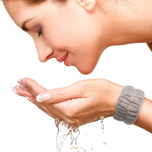 3 Pezzi Fasce per Lavaggio di Viso Fascia di Testa e Braccialetto da Polso Fascia da Polso Per Trucco Fascia per Capelli Elastiche Polsini Impediscono la Fuoriuscita di Liquidi Sulle Braccia Grigio