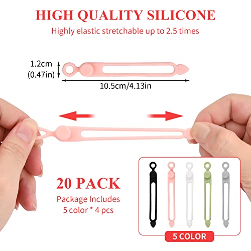 20 Pezzi Fascetta per Cavi in Silicone Cable Ties, Fascette Riutilizzabili Fascette Stringicavo 10.5 * 1.2cm, Fascia di Fissaggio in Silicone per Organizzare Cavi e Fili (5 colori)