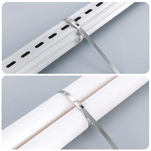【Materiale di Alta Qualità】 Le fascette metalliche sono realizzate in acciaio inox 304 di alta qualità con una superficie levigata e priva di bave. Ha una buona tenacità e resistenza all'usura. Può sopportare un peso massimo di 125 kg.