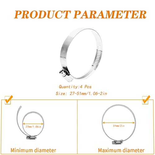 4 Pezzi Fascette Metalliche Stringitubo, Fascetta Stringitubo con Fissaggio, Fascette per Tubi Regolabili con Un Diametro di 27-51 mm, per Pool, Cavi, Rubinetto Domestico, Tubazioni Fissaggio