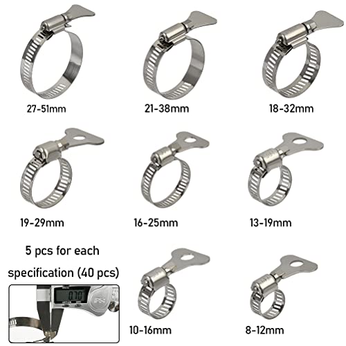 40 Pezzi Fascette Stringitubo Acciaio Inox 8-51 mm Fascette Stringitubo Regolabile 8 Dimensioni Fascetta di Serraggio Fascetta a Vite per Tubo dell'Acqua Familiare,Tubo dell'Automobile Ecc.