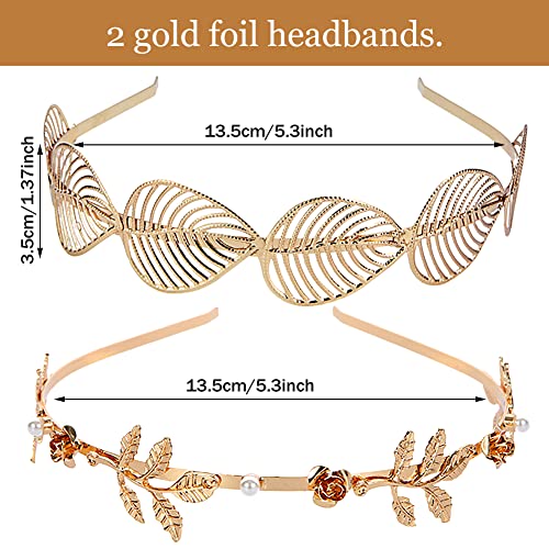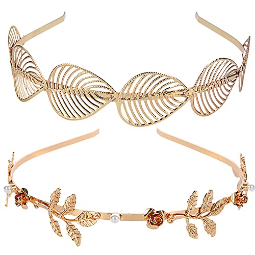 2 Pezzi Fascia per Capelli a Foglia, Corona a Foglia Romana Oro, Fascia di Foglia Corona, Cerchietto con Perle e Rosa, Copricapo Bohémien Mollette Accessorio per Feste di Matrimonio Donne Ragazze