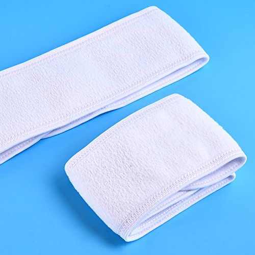 2 Pezzi Spa Fascia per Capelli di Trucco Fasce Facciali di Terry Tessuto Fascia Stretch per Yoga Sport Asciugamano, Bianco