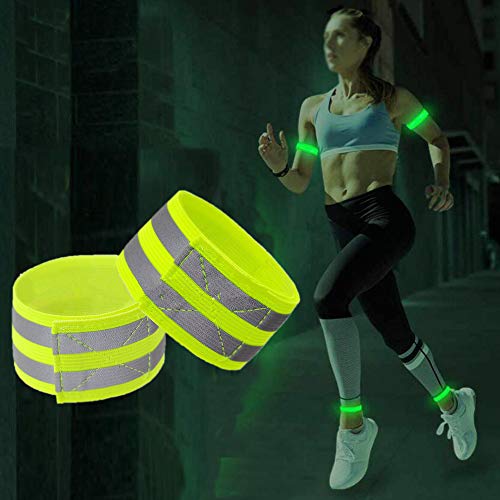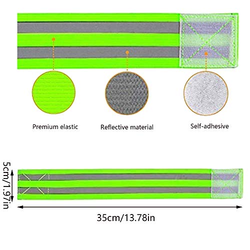 Facile da indossare: utilizzando dispositivi di fissaggio autoadesivi, la striscia riflettente gialla / striscia luminosa può essere facilmente attaccata alle braccia (parte inferiore e superiore delle braccia), ai polsi, alle gambe e ai piedi.
