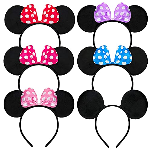 6 Pezzi Fascia per Orecchie per Mouse, Orecchie da Topolino, Orecchie dei Bambini del Mouse, Orecchie da Topo con Fiocco Rosso, 6 Colori per Feste in Maschera, Serate di Festa, Club di Cartoni Animati