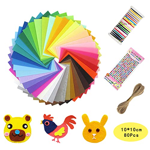 80 Pezzi Feltro Colorato Feltro in Fogli,Feltro e Pannolenci Usato per DIY Mestieri Protezione Ambientale,Fogli di Feltro da Non Tessuto per Artigianato,Fogli Feltro Colorato Bricolage Patchwork