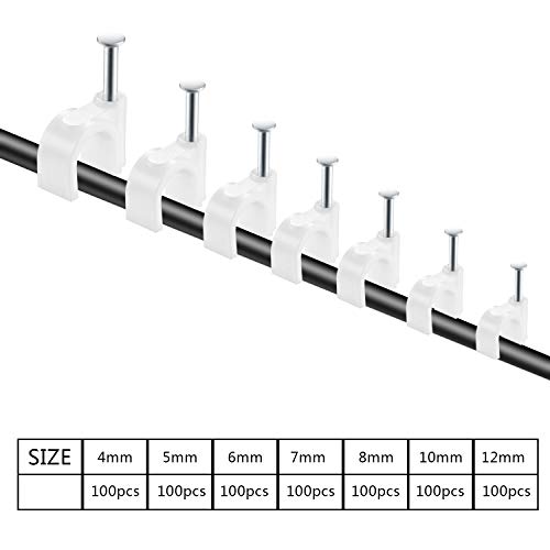 700 Pezzi Fermacavi Rotondi, Chiodi in Acciaio Fascetta per Cavi, Fascette Clip Serracavo con Chiodi per Cavi (4mm, 5mm, 6mm, 7mm, 8mm, 10mm, 12mm)