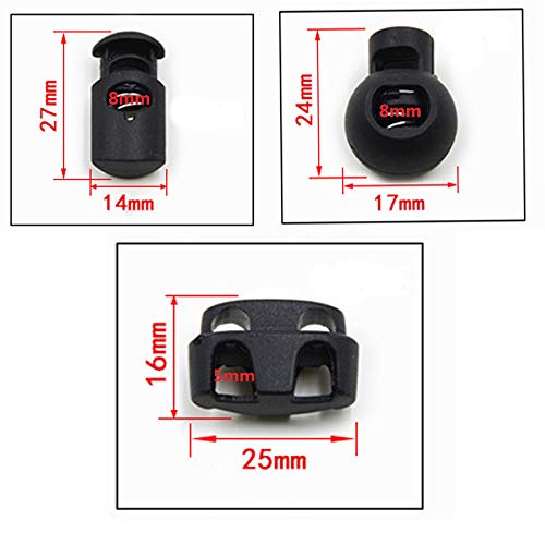 60 pezzi fermacorda gomma nera, fermacorda per funi a molla, cursore a molla, tappo a 40 pezzi, foro da 8 mm, tappo a 20 pezzi, foro da 5 mm, 2 fori