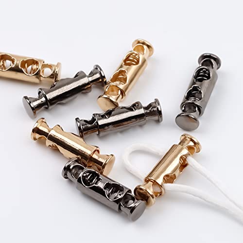 12 Pezzi Fermacorda a Molla, Fermacorda - LNSYSNS Fermacorda a Molla Doppio Foro, Nero, Oro - Fermacorda a Molla Metallo per Zaini, Abbigliamento Sportivo, Scarpe (Stile lungo)