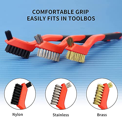 6 Pezzi Filo Insieme di Spazzola(Acciaio, Ottone e Nylon) con Manico Curvo Setole Metalliche Spazzola Antiruggine per Ruggine E Pulizia Profonda