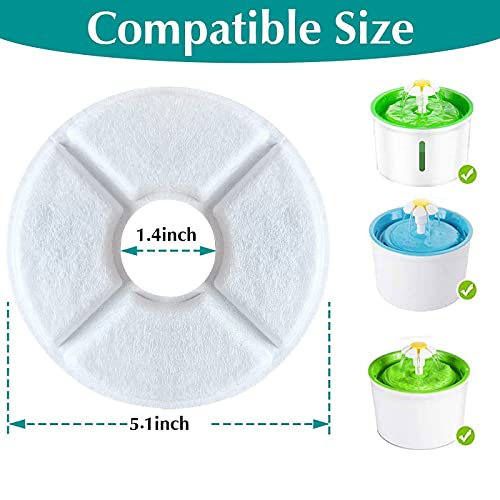 Abbinamento perfetto: la dimensione del filtro della fontana dell'acqua per animali domestici è di 5,1 pollici * 5,1 pollici, la dimensione della cavità interna da 1,4 pollici a 1,45 pollici. Adatto per fontana da 81 once / 2,4 litri 84 once / 2,5 litri. Si prega di controllare la dimensione corrispondente della fontana prima di ottenere i nostri filtri.