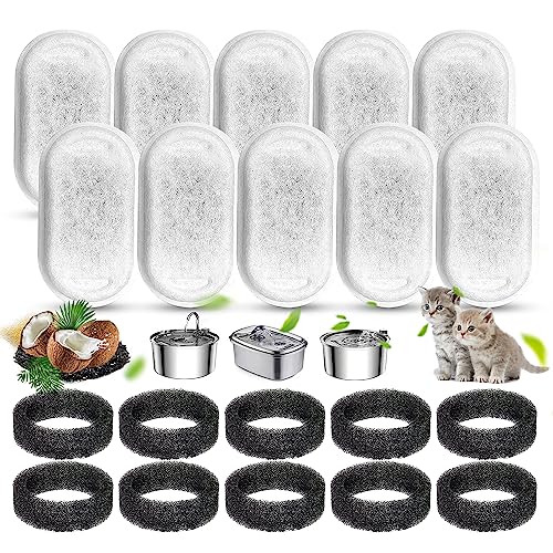 20 Pezzi Filtri Fontanella per Gatti, Incluso 10 Pezzi di Filtro a Carbone e 10 Pezzi di Spugna in Schiuma, Per un'ampia Gamma di Fontanelle per Gatti in Acciaio Inossidabile