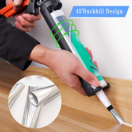 Finitura per sigillatura: il set di applicatore perfetto per l'ugello per il calafataggio può aiutare a riparare le articolazioni e pulire la colla residua, design a 45 ° della museruola che può facilmente lenire e colmare le lacune, caos caos e finiture irregolari. Gli strumenti di calafataggio possono sigillare da soli, migliorare la qualità agglutinante e il senso estetico della superficie.