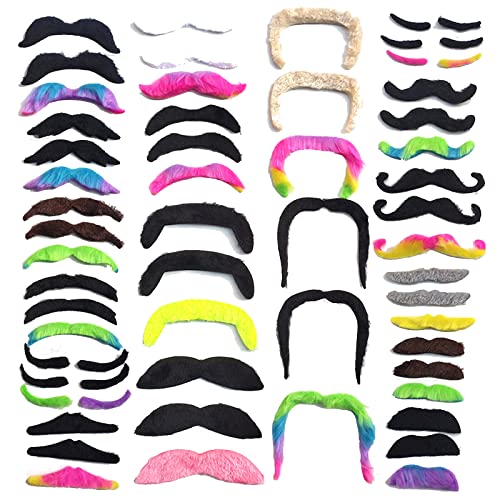 【Stili diversi】 La confezione include un totale di 54 baffi finti, 18 stili diversi, ogni stile ha 3 pezzi, include 2 pezzi dello stesso colore e 1 pezzo colorato, stili diversi possono essere combinati con vestiti diversi.