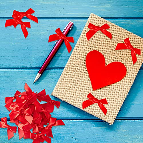 24 Pezzi Fiocchi a Nastro di Raso Autoadesivi per Artigianato Fai da Te Decorazioni per Matrimonio Natale San Valentine Decorazioni per Cartoncini, Larghezza 5 cm (Rosso)