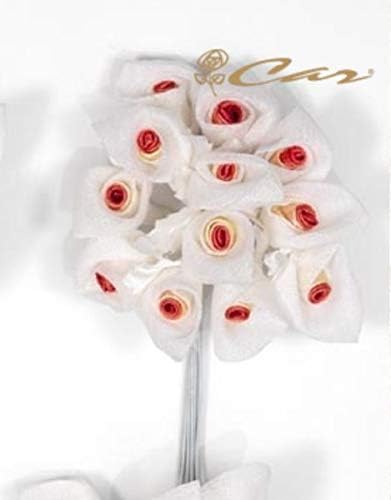 72 PEZZI Fiore Bomboniera CALLA tessuto garzato bianco interno corallo
