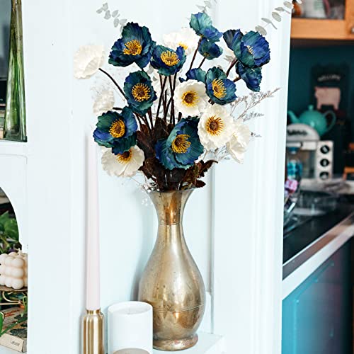 6 Pezzi Fiori Finti Papaveri Fiori Artificiali Papavero 59 Cm Fiori Finti Per Vasi Alti Fiori Di Seta Per Cucina Giardino Matrimonio Vacanza Decorazioni Matrimoni Centrotavola (blu E Bianco)