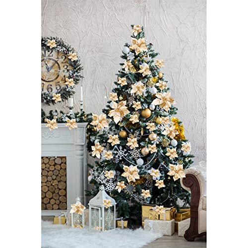 72 Pezzi di Fiori di Poinsettia Finti Glitterati Ornamenti di Fiori di Stella di Natale per Addobbi di Casa e Albero di Natale Decorazione per Matrimonio e Capodanno, 3 Taglie (Oro)