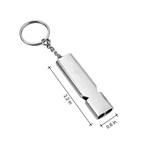 2 Pezzi Fischietto Emergenza, Double-Tube Fischietti Portatile in Lega di Alluminio, Fischio Esterno con Portachiavi Fischietti Multifunzione per la Nautica Campeggio Escursionismo