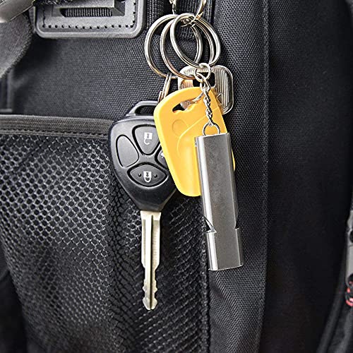 【Ampie applicazioni】 Il fischietto con portachiavi può essere utilizzato per il campeggio, l'escursionismo, la nautica, la caccia e altre attività all'aperto oltre al fischio dell'arbitro, del cane e della guardia.