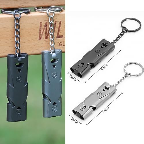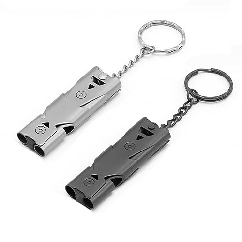 2 pezzi fischietto, fischio di segnalazione fischietto forte di emergenza, fischio di emergenza in metallo con portachiavi, fischietto di sopravvivenza di emergenza all'aperto (nero, acciaio)