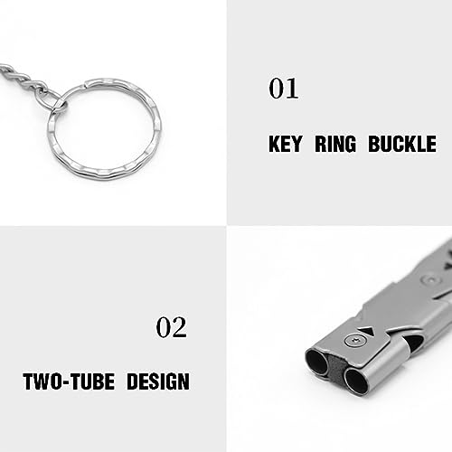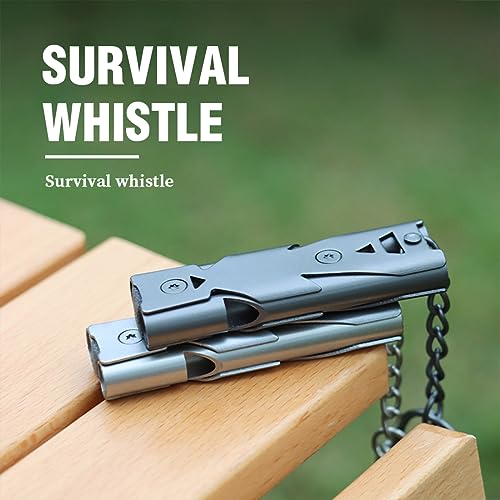 ♞Informazioni sul fischietto di emergenza: questo fischietto di emergenza è realizzato in alluminio di alta qualità per garantire durata e sicurezza. Utilizza la risonanza ad alta frequenza a due camere e il volume può raggiungere i 120 dB e il suono può facilmente diffondersi lontano.