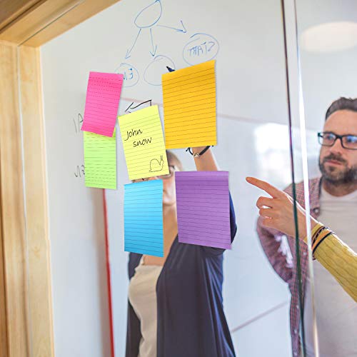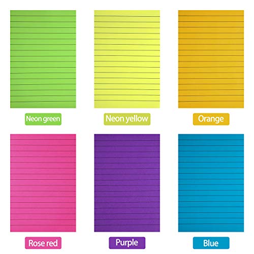 6 Pezzi di Foglietti Adesivi Allineati Foglietti Adesivi Colorati Foderati Post Memo Colorati per Ufficio, Scuola E Casa, 50 Fogli (Colori al Neon Luminosi, 6 x 4 Pollici)