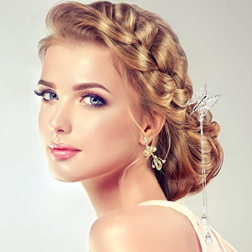 Design vivido: c'è una vivida forma di farfalla 3D sul bacchette per capelli vintage di perle a farfalla, le nappe di perle oscilleranno delicatamente con te quando cammini, è proprio come una vera farfalla che riposa sulla tua testa quando indossi la forcina, facendoti essere il centro della folla