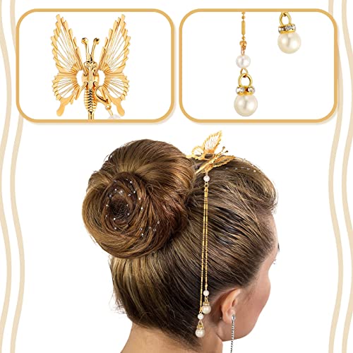 Contenuto della confezione: riceverai 2 bastoncini per capelli a farfalla in 2 colori, oro e argento;