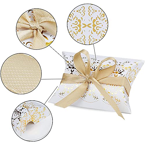 50 Pezzi Forma di Cuscino Scatole Bomboniere, Scatole per Cuscini in Carta Kraft, Scatola di Caramelle di Carta, Confezione Regalo Kraft, per Matrimonio, Festa di Compleanno, Natale (Oro)