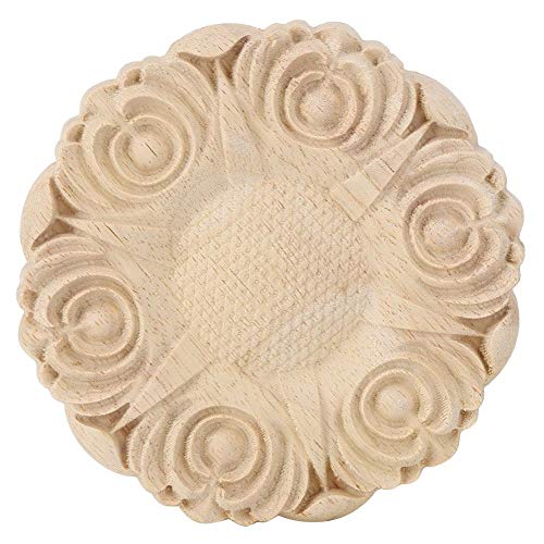 4 pezzi 10 cm forma rotonda intaglio del legno applique cornice rotonda fiore per porta della mobilia armadio rosa armadio decorazione mobili