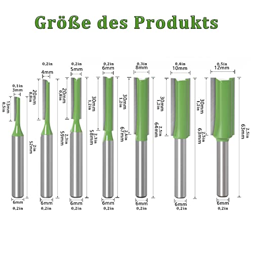 Il set include: 7 manopole fresa per fresatrice verticale, 6 mm shank, 3 mm / 4 mm / 5 mm / 6 mm / 8 mm / 10 mm / 12 mm di diametro dritto, può essere adattato alle tue diverse esigenze.