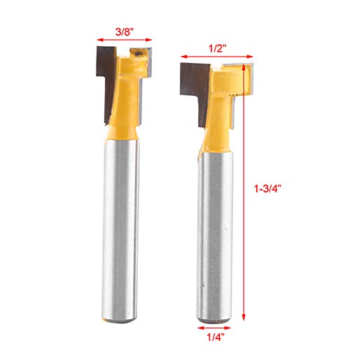 2 pezzi 1/4 "fresa per fresa con scanalatura T con gambo e fresa gialla con scanalatura a T set di punte per fresa per buco della serratura 3/8" e 1/2 "tagliente per lavorazione del legno per utensi