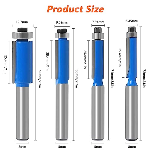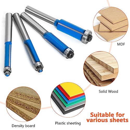 4 Pezzi Fresa a Taglienti Diritti per Legno, Codolo da 8 mm, Rifilatore per Legno con Top End Cuscinetto, Set Fresa per Rifilare per Legno, per Lavorazione del Legno (4)