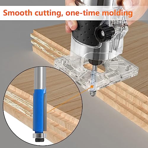 Materiale: Testa della fresa Flush Trim Router Bit in lega YG8, corpo della fresa in acciaio al carbonio 45 #, superficie rivestita con rivestimento resistente al calore, prestazioni durature, tagli di rifinitura accurati per laminati e lavori su sagome.