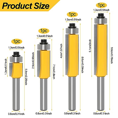 4 Pezzi Fresa Taglienti Dritti Fresa Gambo 8mm Fresa Dritta Strumento di Taglio per la Lavorazione del Legno per la Rifilatura Precisa dei Bordi del Legno con Taglio a Filo