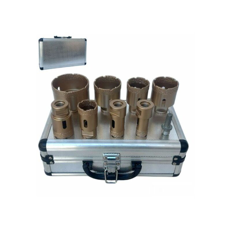 Questo set di punte diamantate professionali di alta qualità, è adattabile sia con trapani oppure con smerigliatrici angolare con filettatura M14. La tecnologia di brasatura sottovuoto fornisce un taglio rapido, semplice e pulito. È adatto per porcellana, piastrelle, granito, marmo. Taglio efficiente e regolare Set di strumenti completo Struttura umanizzata Funzionamento semplice Caratteristiche tecniche: Materiale: Diamante Diametro delle frese: 20mm - 25mm - 32mm - 35mm - 40mm - 45mm - 50mm - 68mm La confezione contiene: Nr. 8 Frese diamantate Nr. 1 Codolo adattatore per trapano Nr. 1 Valigetta