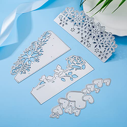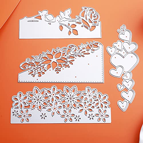 4 pezzi Fustella modello di punzonatura fiori di rosa set di cuori fustelle di taglio cuori in fiore taglio di bordi stencil goffratura modelli per scrapbooking carte di album embossing decorazione