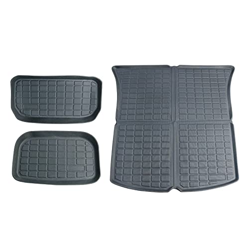 3 Pezzi - GAFAT Tesla Model Y 2021 2022 2023 Tappetino per Bagagliaio Anteriore e Posteriore, Model Y Tappetino per Bagagliaio Originale Scanner 3D TPE, Tesla Model Y Accessorio (Nero 1)