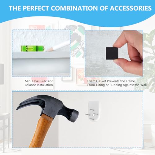 Design Nascosto: Ganci per quadri piccolo e squisito, può essere facilmente nascosto dietro il dipinto o la foto, in modo che la foto può essere riflessa senza alcuna ostruzione, non influenzerà la bellezza della foto o del dipinto, ma anche in grado di riflettere il grado di effetto di levitazione unico, in modo che i vostri dipinti possono diventare il punto focale di tutta la scena, non devono preoccuparsi di ganci che bloccano l'immagine, per darvi la resa perfetta dell'effetto!