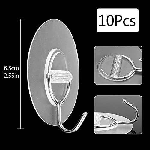 10 pezzi Ganci Adesivi Trasparenti Ganci Adesivi Impermeabile PVC Ganci Senza Cuciture Rimovibile Ganci Adesivi da Parete Senza Chiodiplastica Rotondo Autoadesivo Gancio per Bagno Cucina 5 kg (max)