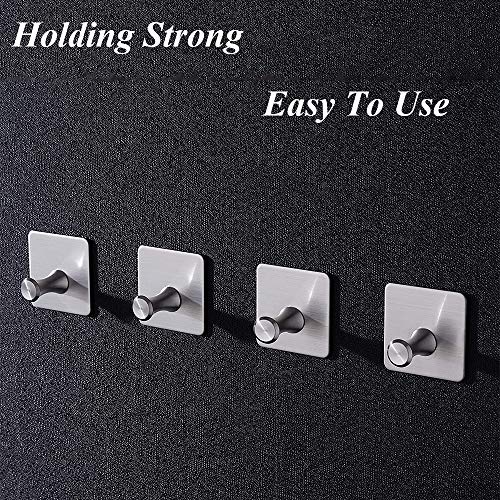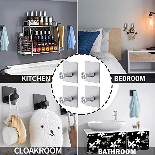 4 Pezzi Ganci Autoadesivi, Adesivo Ganci Portasciugamani, Acciaio Inossidabile Nessuna Perforazione Appendiabiti a Parete Impermeabili Ganci per Cucina, Bagno, Armadio da Ufficio (Argento)