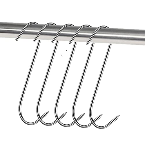 Contenuto della confezione: 10 x ganci per carne, diametro 5 mm, lunghezza 12 cm, ganci in acciaio inox a forma di S.