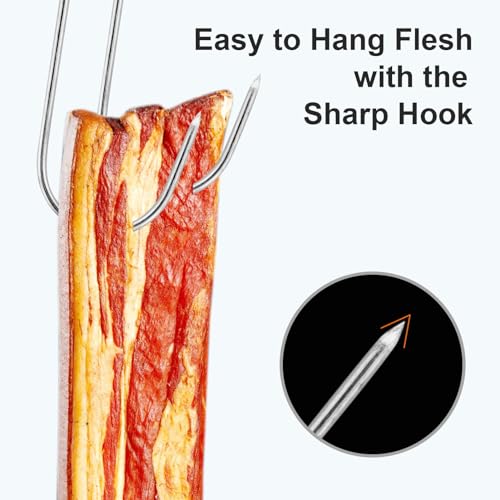 Facile da usare: la punta estremamente appuntita consente di appendere oggetti affumicati a questo gancio in modo rapido e semplice. Hanno una superficie liscia senza sbavature per un uso senza sforzo.
